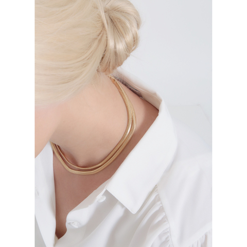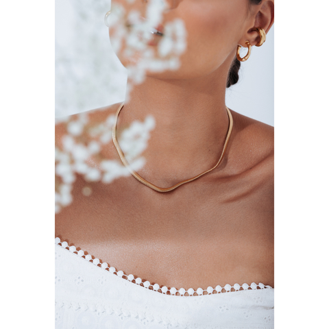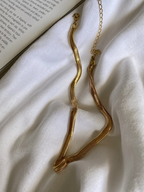 Banhada a ouro, e maleável, se encaixa perfeitamente no pescoço, e você pode usar ela mais soltinha ou mais agarrada, você decide como prefere arrasar.