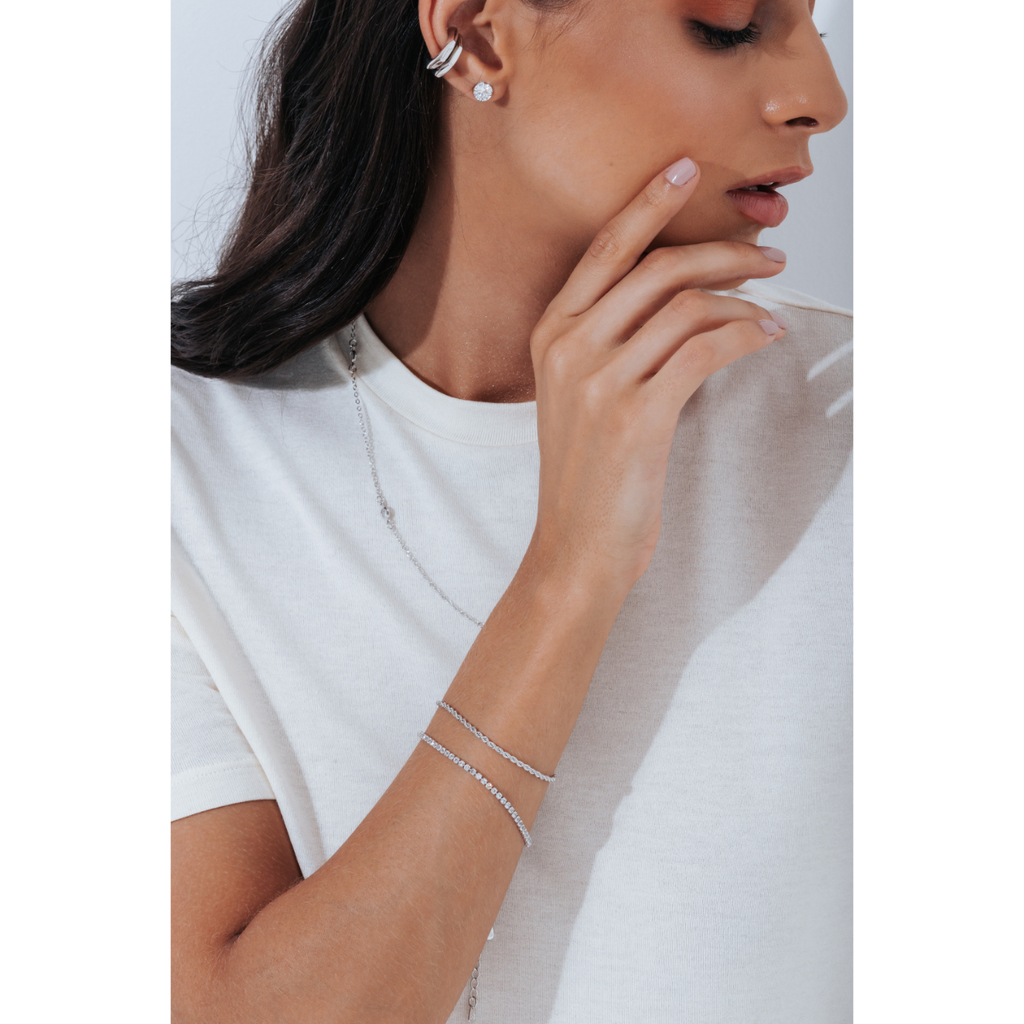 Banhado em ródio branco e com 2 fileiras cravejadas de zircônia em um acabamento impecável.