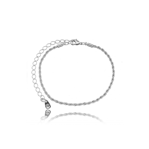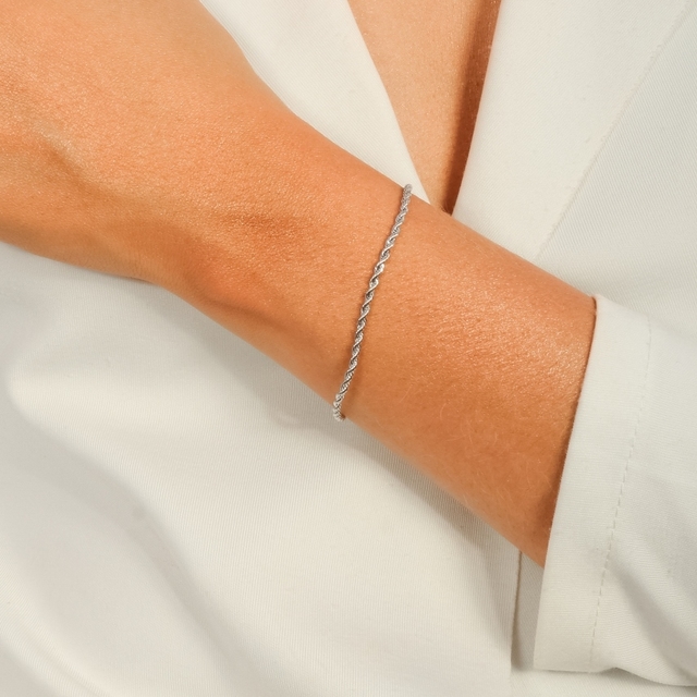 Um acessório clássico, e sempre em alta. Pulseira banhada a ródio branco e com detalhe dos metais trançado.